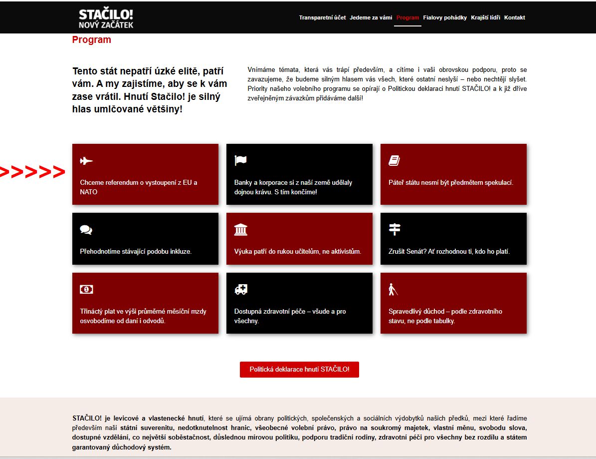 Jestliže hnutí Stačilo!, které je hlavním představitelem revize současného politického systému a západního směřování naší země (na svém webu si dalo
